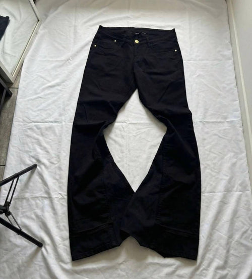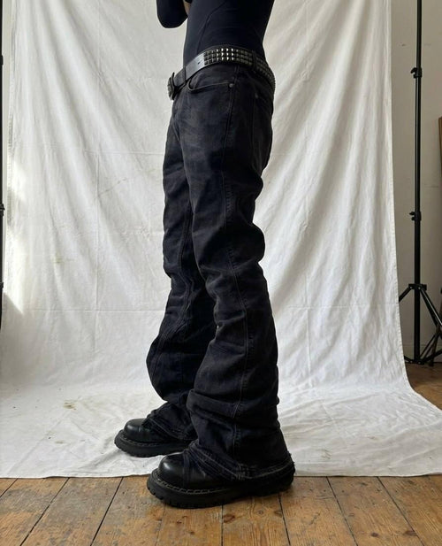 Ręcznie robione czarne jeansy z szerokimi nogawkami – Y2K Goth Alt Streetwear -